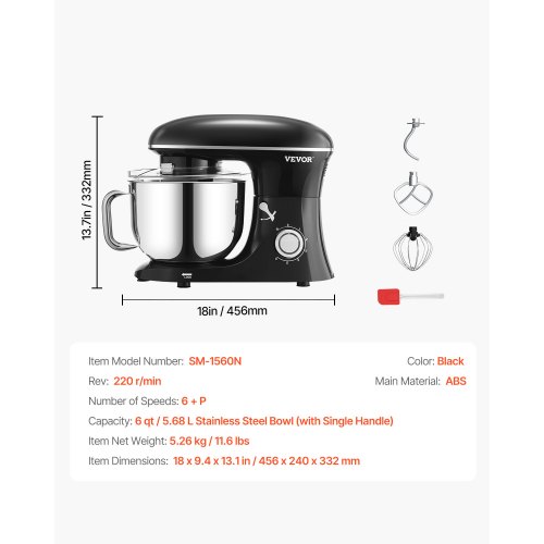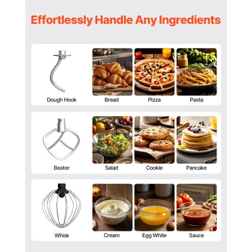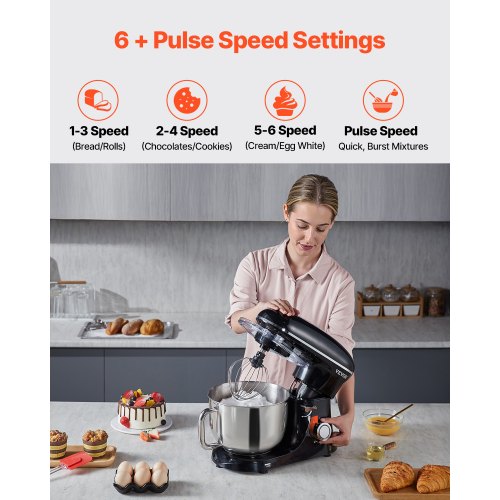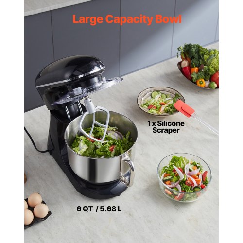 VEVOR Robot da Cucina Impastatrice 1400 W 5,68 L Robot da Cucina con Testa Inclinabile Ciotola in Acciaio Inossidabile Gancio per Impastare Frusta Raschietto, Robot da Cucina Domestico per Mescolare