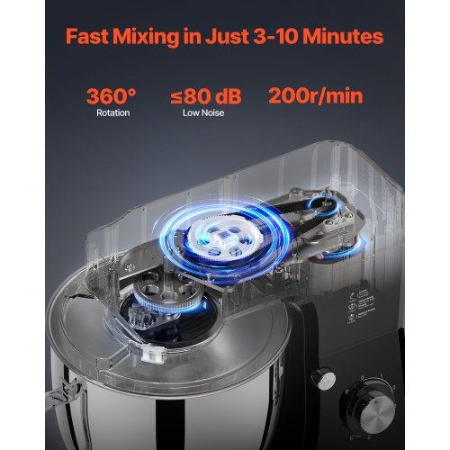 VEVOR Robot da Cucina Impastatrice 1400 W 7,84 L Robot da Cucina con Testa Inclinabile Ciotola in Acciaio Inossidabile Gancio per Impastare Frusta Raschietto, Robot da Cucina Domestico per Mescolare