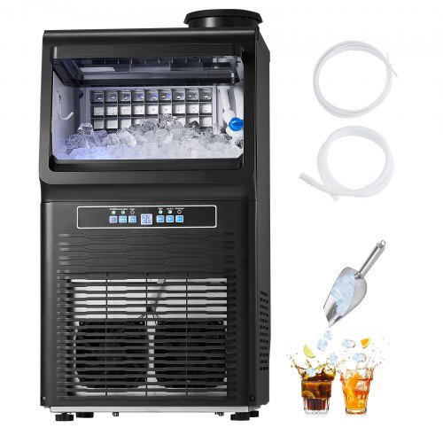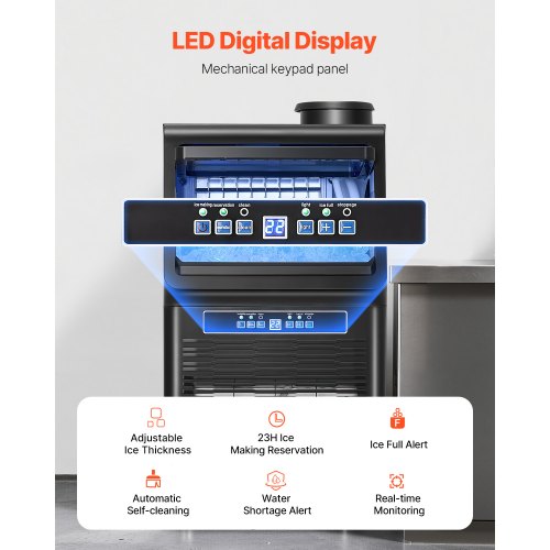 VEVOR Macchina per Ghiaccio Commerciale ca. 54,43 kg/giorno Macchina Cubetti di Ghiaccio Capacità Stoccaggio ca. 12,7 kg, Display Digitale LED, Bar, Catering, Hotel, Ristorante, Cucina Commerciale