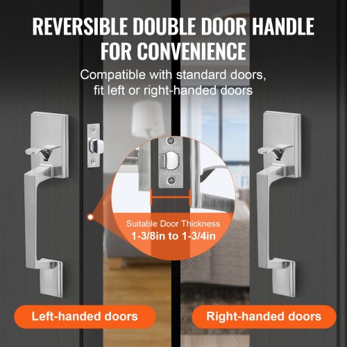 VEVOR Coppia di Maniglie per Porta d'Ingresso in Nichel Maniglia Senza Serratura Maniglia Reversibile Destra-Sinistra Senza Serratura Facile Apertura per Porta d'ingresso Casa Ufficio Esterno Interno