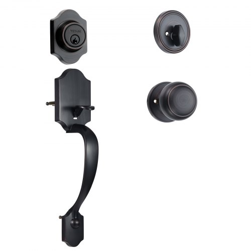 VEVOR Set Maniglie Anteriore per Porta d'Ingresso, Set Maniglia Chiavistello Reversibile Destra-Sinistra Serratura per Porta d'Ingresso Interno Casa Ufficio Esterno Interno, Maniglia Porta Colore Rame