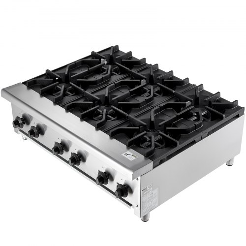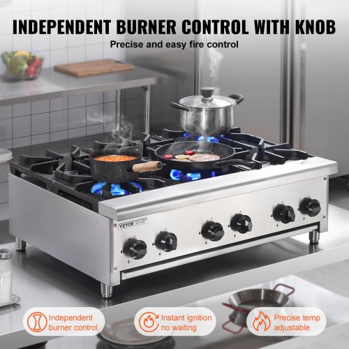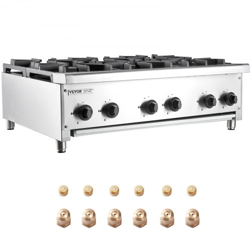VEVOR Cucina a Gas Commerciale con 6 Fuochi, Piano Cottura a Gas Propano e Naturale, Piastra Riscaldante a Gas in Acciaio Inossidabile, Attrezzatura da Cucina Commerciale per Ristoranti, 42 KW