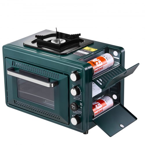 VEVOR Forno da Esterno Fornello da Campeggio a Gas Portatile Fuoco Regolabile con Timer da 60 minuti Antivento Ripiano per Griglia e Teglia per Arrosti Campeggio, Picnic, Viaggio, Cucina all'Aperto