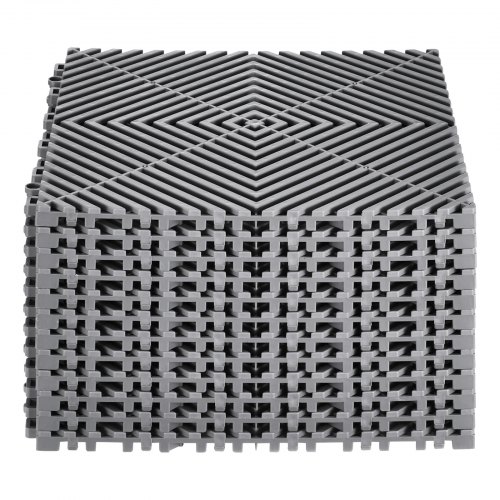 VEVOR Tappetino di Drenaggio ad Incastro, Cuscino Modulare ad Incastro con Giunzione, Piastrelle per Pavimenti Antiscivolo e Tappetino per Doccia Garage Giardino Cucina 310 x 310 mm 24 Pezzi Grigio
