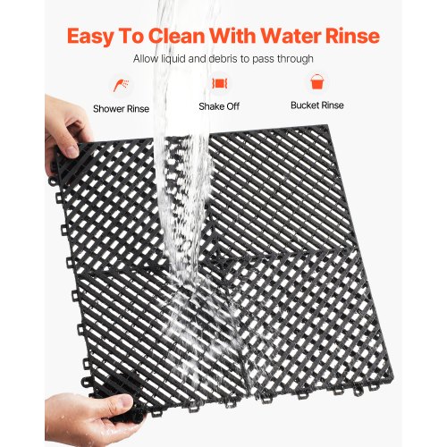 VEVOR Tappetino di Drenaggio ad Incastro 310 x 310 mm Cuscino ad Incastro Modulare da 12 Pezzi, Piastrelle per Pavimenti di Drenaggio Nero Antiscivolo e Tappetino per Doccia, per Garage e Uso Esterno