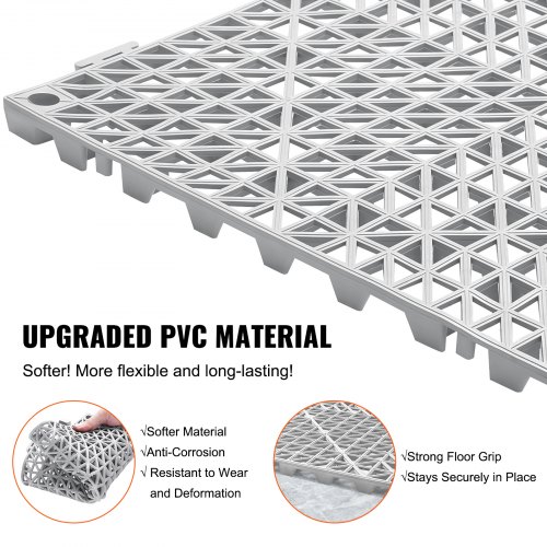 VEVOR Tappetino di Drenaggio ad Incastro 415 x 415 mm Tappetini di Drenaggio con Giunzioni 24 Pezzi, Piastrelle per Pavimenti di Drenaggio Grigio Antiscivolo e Tappetino per Doccia, per Garage Cucina