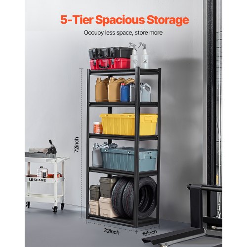 VEVOR Scaffali Portaoggetti,Scaffali Portaoggetti per Garage a 5 Livelli, Ripiani in Metallo Regolabili, Scafandro per Cucina, Magazzino, Seminterrato, Nero 907 kg 406,4 x 812,8 x 1600,2 mm