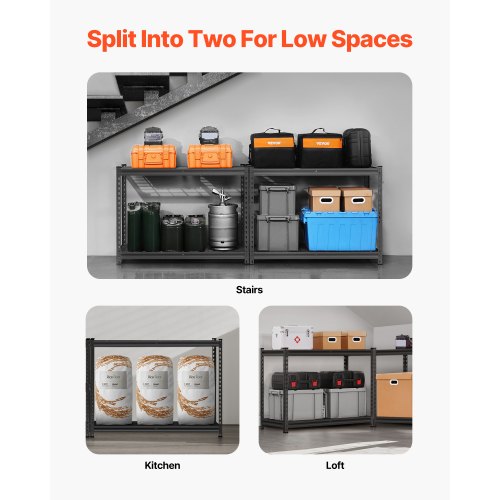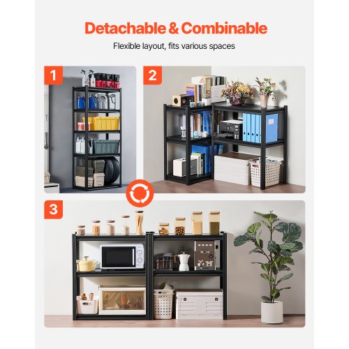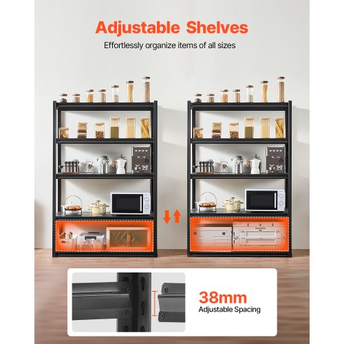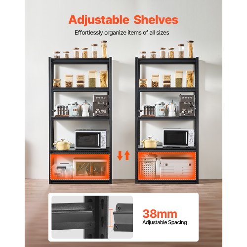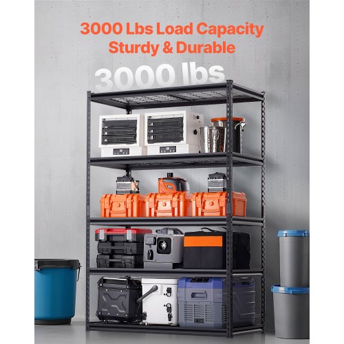 VEVOR Scaffale Portaoggetti,Scaffale Portaoggetti a 4 Livelli, Ripiani in Metallo Regolabili, Scafandro per Cucina, Magazzino, Seminterrato, Scaffalatura Nero 1088,6 kg, 508 x 1016 x 1447 mm