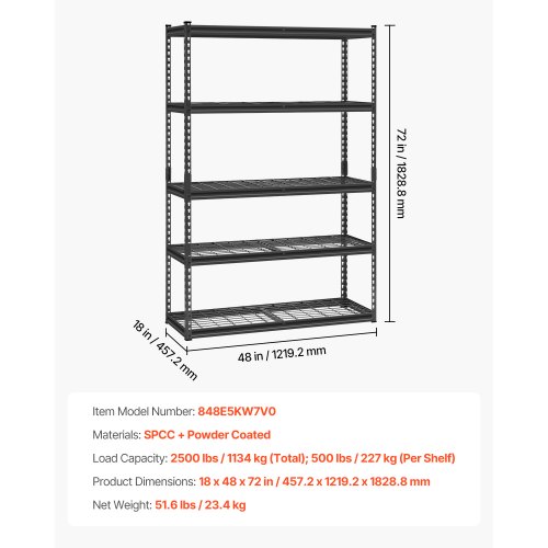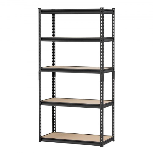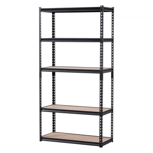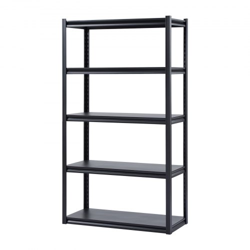 VEVOR Scaffale Portaoggetti,Scaffale Portaoggetti a 5 Livelli, Ripiani in Metallo Regolabili, Scafandro per Cucina, Magazzino, Seminterrato, Scaffalatura Nero 907 kg, 457,2 x 1016 x 1828 mm