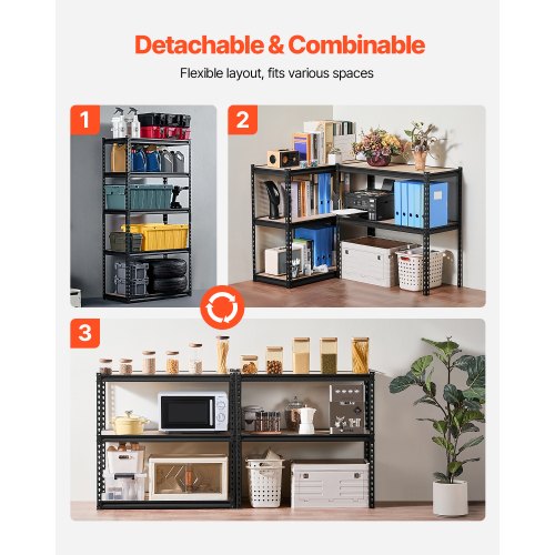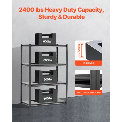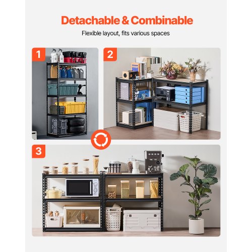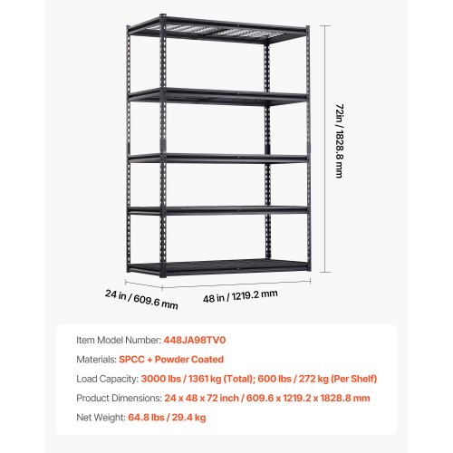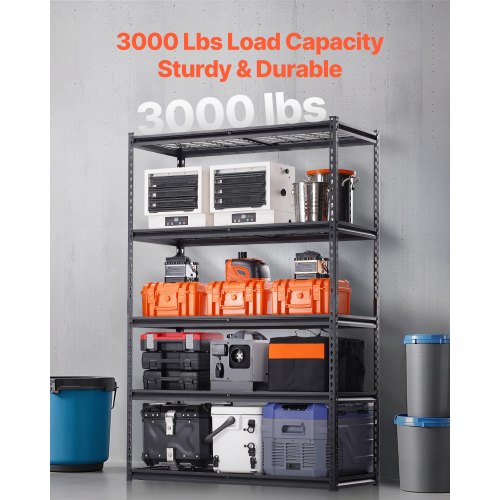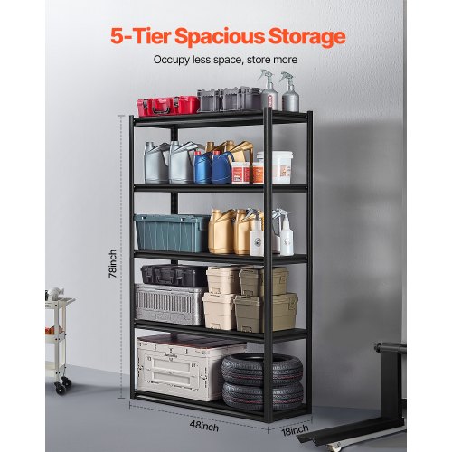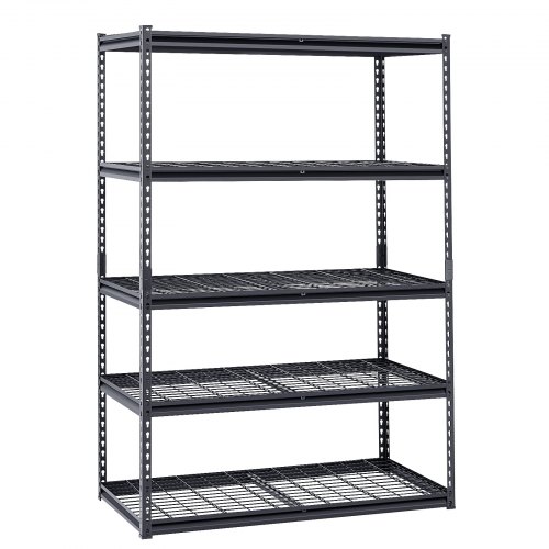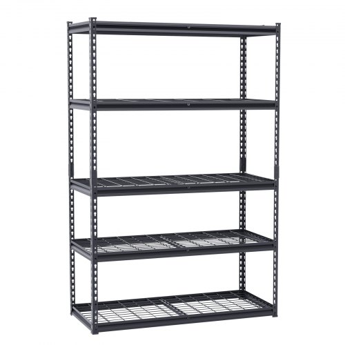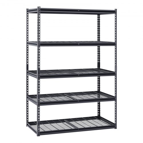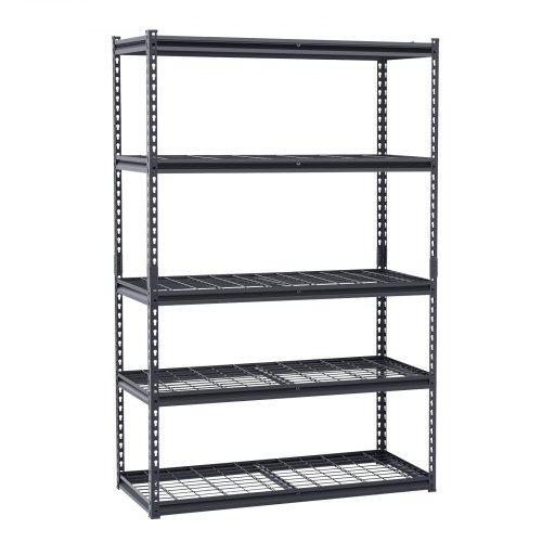 VEVOR Scaffale Portaoggetti,Scaffale Portaoggetti a 5 Livelli, Ripiani in Metallo Regolabili, Scafandro per Cucina, Magazzino, Seminterrato, Scaffalatura Nero 1361 kg, 457 x 1219,2 x 1981 mm