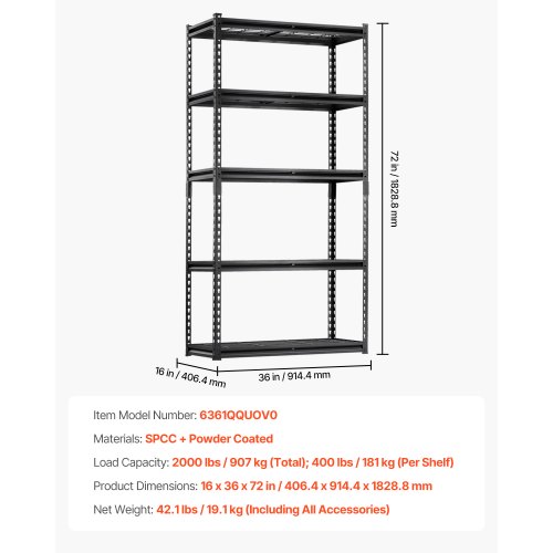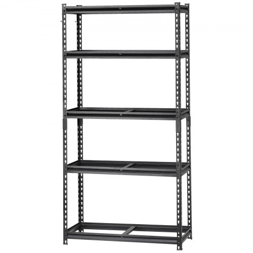VEVOR Scaffale Portaoggetti,Scaffale Portaoggetti a 5 Livelli, Ripiani in Metallo Regolabili, Scafandro per Cucina, Magazzino, Seminterrato, Scaffalatura Nero 907 kg, 406 x 914 x 1813 mm
