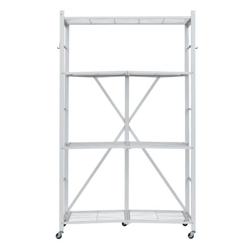 VEVOR Scaffale Portaoggetti Pieghevole a 4 Ripiani con Ruote, Scaffale in Metallo Pieghevole, Robusto, Senza Montaggio, Ideale per Garage, Cucina, Bianco, Capacità 90,7 kg 530 x 910 x 1520 mm