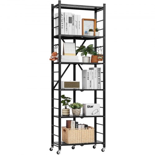 VEVOR Scaffale Portaoggetti Pieghevole a 6 Ripiani con Ruote, 300 x 610 x 1830 mm, Scaffale in Metallo Pieghevole, Resistente, Senza Montaggio, per Garage, Cucina, Cantina, Nero Capacità 340 kg