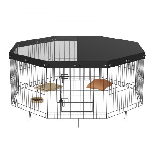 VEVOR Box per Cani Recinto per Cuccioli Coniglio Gatti con Copertura Taglia Piccola e Media 8 Pannelli Pieghevoli Metallici 609,6x609,6 mm Uso Esterno Interno, Recinto di Gioco per Animali Domestici