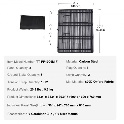VEVOR Recinto per Cani, Confezione da 8 Pannelli, 760 mm x 610 mm Box per Cani Pieghevole in Metallo, per Interni ed Esterni con Porta, Copertura Superiore in Tessuto Oxford 600D, per Cani Gatti