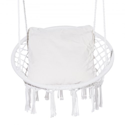 VEVOR Poltrona sospesa, 150 kg, Poltrona sospesa girevole in macramè, Cuscino, Materiali di montaggio, Corda di cotone, Poltrona relax con frange, giardino, Interno, Esterno, Bianco