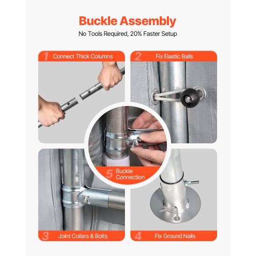 VEVOR Capannone da Esterno, Tenda da Deposito Portatile 183 x 183 x 214 cm, con Porta Avvolgibile e Prese d'Aria, Tettoia Impermeabile, Struttura Robusta, Posto Auto Coperto per Garage, Grigio