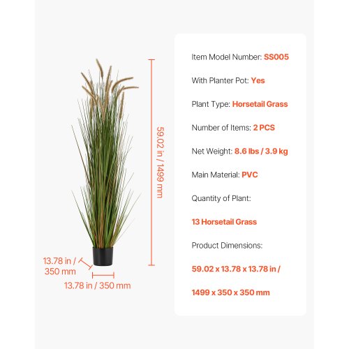 VEVOR Erba Artificiale, 2 Pezzi 1499 mm Erba di Canna di Equiseto in Vaso, Pianta di Arbusti Finti in di Alta Qualità per Interni ed Esterni Giardino Ufficio Decorazione della Casa, Verde