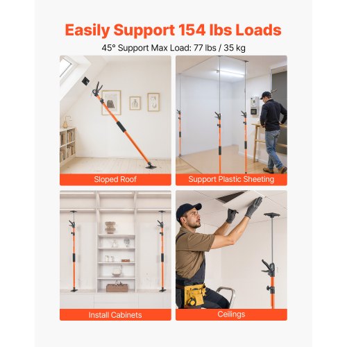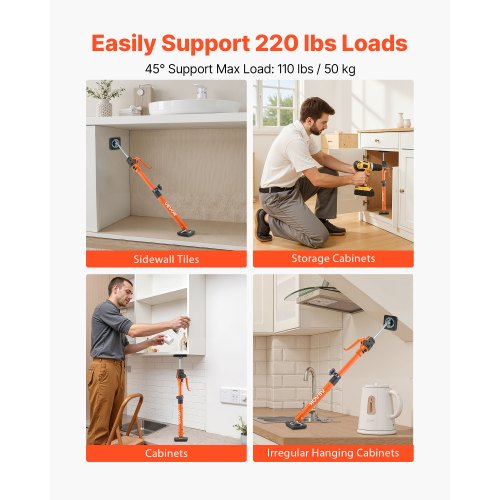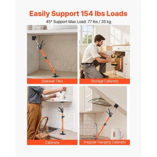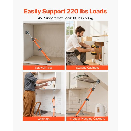 VEVOR Asta Supporto per Martinetto Installazione Armadietti, Confezione da 8, Asta di Supporto Telescopica Acciaio da 116-290 cm, Regolabile a 3 Capacità max. 70 kg per Sollevamento di Cartongesso