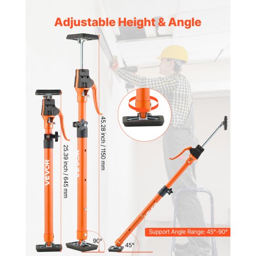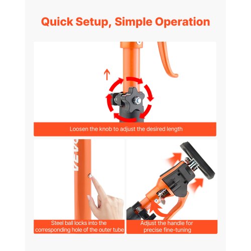 VEVOR Asta di Supporto per Martinetto, 2 Pezzi, Asta di Supporto Rapido Telescopica in Acciaio da 64,5-115 cm, Sistema Regolabile a 3 Mani con Capacità 100 kg per Sollevamento di Cartongesso
