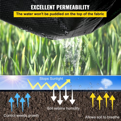 VEVOR Barriera contro le Erbacce, Tessuto Paesaggistico da 5,8 Once, Geotessile di Controllo dell'Erba Intrecciato Resistente 900 x 900 m per Giardino, Patio, Nero