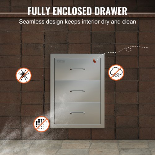 VEVOR Cassetto con Guida Scorrimento Ripiano Triplo in Acciaio Inox Cucina all'Aperto, Cassettiera per Isola di BBQ Cucina Esterna Cassetto Triplo con Guide Scorrimento in Acciaio Inox Altezza 64,4cm