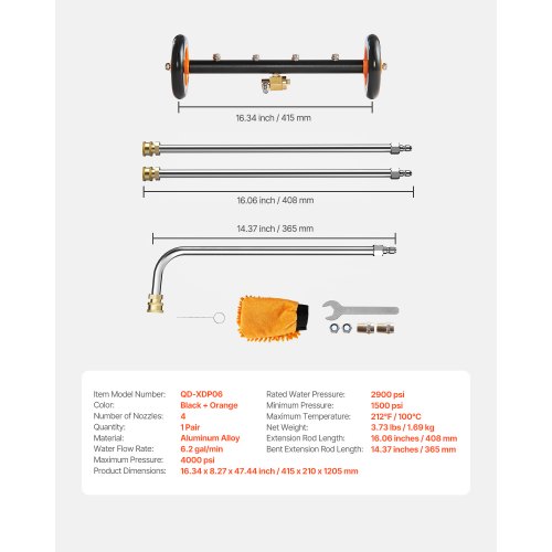 VEVOR Idropulitrice per Superfici in Acciaio Inossidabile con 4 Ruote, 275,8 bar Max, Connettore Rapido da 1/4, 2 Ugelli a Spruzzo, 2 Lance Estese, per Cemento, Patio, Marciapiede 465 mm
