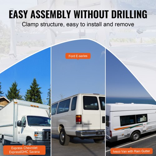 VEVOR Portapacchi per furgone, Portapacchi per furgone con grondaia regolabile 56,3-61,4", Portapacchi in acciaio legato capacità 750 libbre, Portapacchi per furgone con fermascala