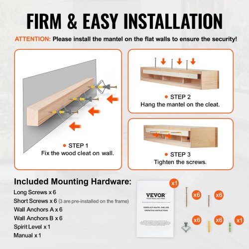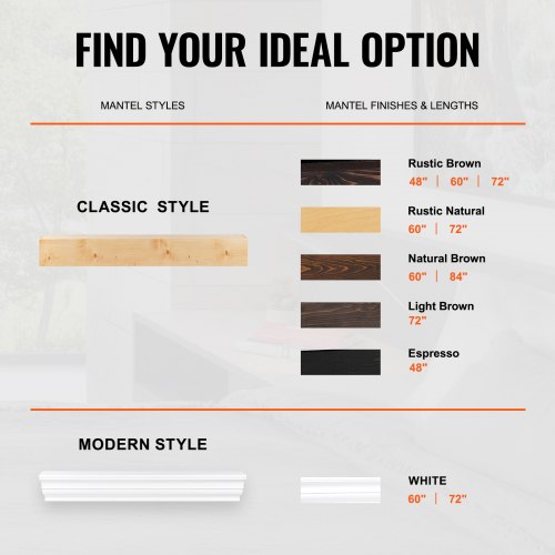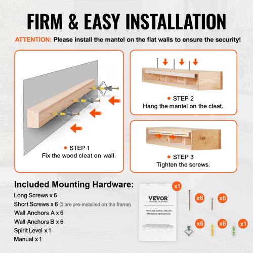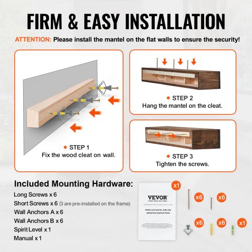 VEVOR Mensola per caminetto galleggiante a parete 72x7,8x5 pollici, Mensola per camino galleggiante in legno naturale, Capacità carico 50 libbre, Mensola per decorazione murale, Marrone rustico