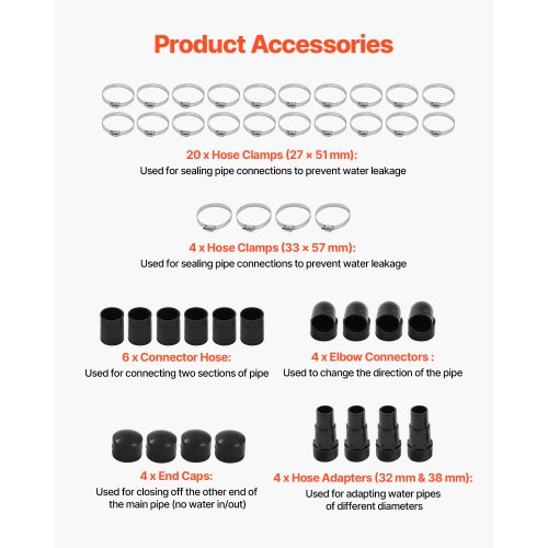 VEVOR Pannello Solare per Piscina in HDPE, 1235 x 3100 mm 4 Pezzi, Durevole Resistente Intemperie, con Accessori Completi, Aumenta Temperatura dell'Acqua, Piscina Fuori Terra e Interrata