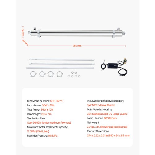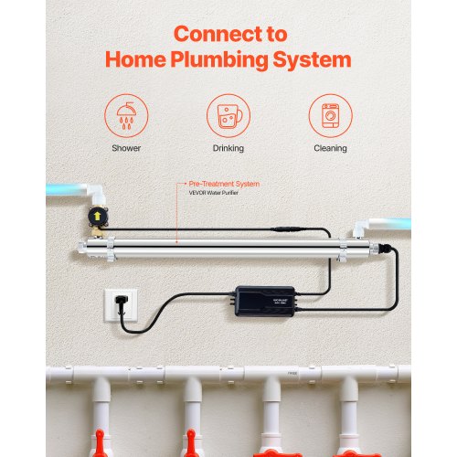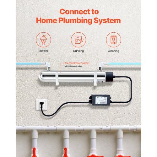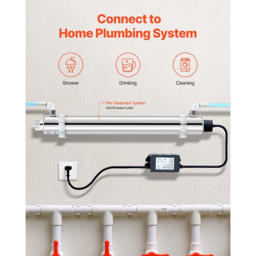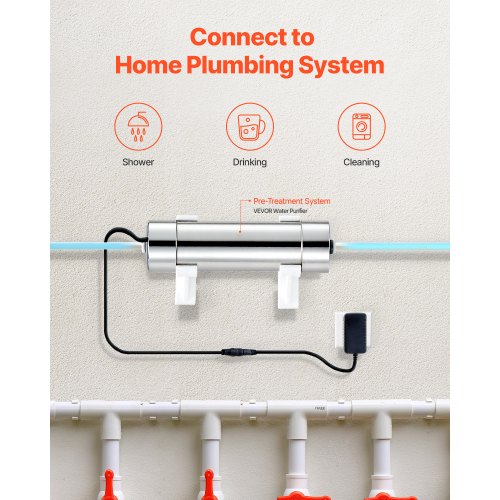 VEVOR Purificatore d'Acqua UV, 55 W 45,4 L/min Filtro Purificatore d'Acqua Ultravioletto Versatile 220 V con Alloggiamento in Acciaio Inox, per Tutta Casa con Manicotto al Quarzo, per Bere, Pulizia