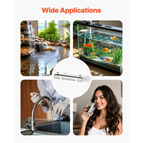 VEVOR Purificatore d'Acqua UV, 12 W 3,785 L/min Filtro Purificatore d'Acqua Ultravioletto Versatile 220 V con Alloggiamento in Acciaio Inox, per Tutta Casa con Manicotto al Quarzo, per Bere, Pulizia