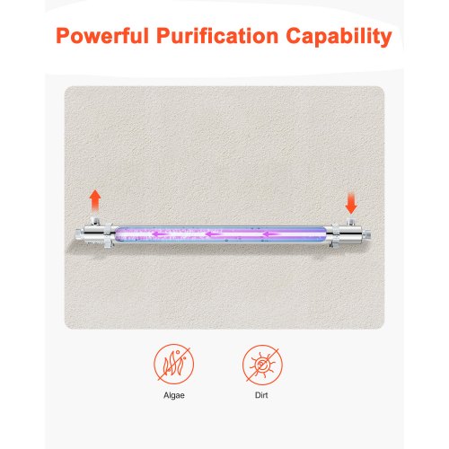 VEVOR Purificatore d'Acqua UV, 25 W 22,7 L/min Filtro Purificatore d'Acqua Ultravioletto Versatile 220 V con Alloggiamento in Acciaio Inox, per Tutta Casa con Manicotto al Quarzo, per Bere, Pulizia