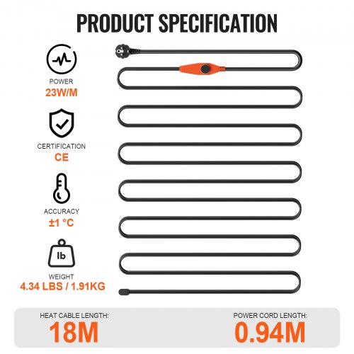 VEVOR Cavo Riscaldante per Tubi Lunghezza da 18 m 23 W/m per Tubi con Termostato Integrato, Cavo Riscaldante per Tubi dell'Acqua Protezione Tubi in PVC, Tubi in Metallo e Plastica dal Congelamento