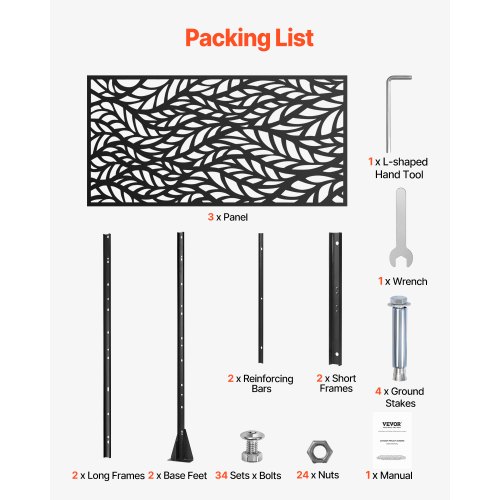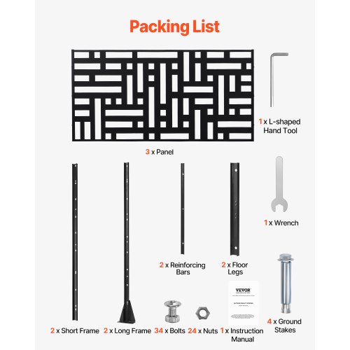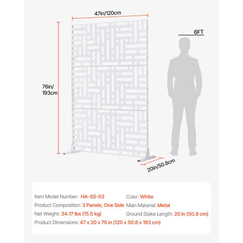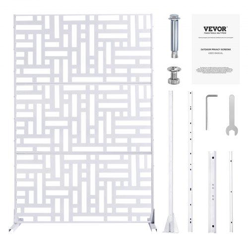 VEVOR Pannelli per Privacy in Metallo 120x50,8x193 cm Schermi Pannelli per Privacy all'Aperto, Fendivista Divisorio per Esterno Indipendente, Recinzione Decorativa 3 Schermi da Giardino, Bianco