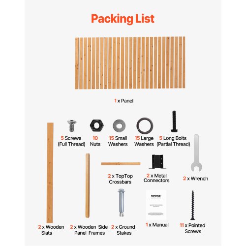 VEVOR Pannello Divisorio in Legno per Privacy, pannello con Supporto, Pannello Decorativo per Privacy del Patio, Divisorio per Esterni per Balcone, Patio, Prato,Giardino 91 x 6,3 x 187 cm