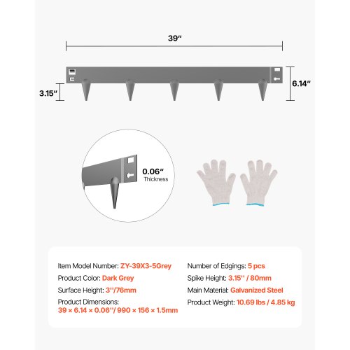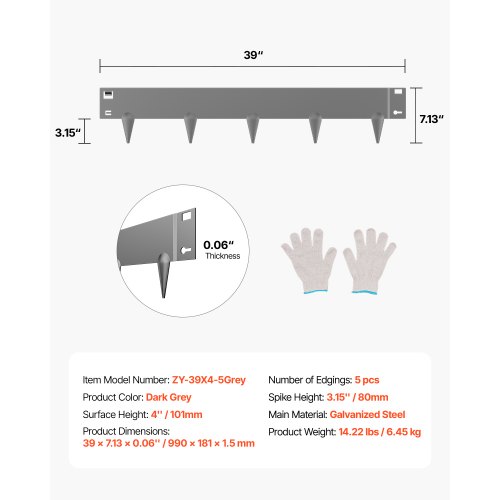 VEVOR Bordatura in Acciaio Metallo Antiruggine per Giardino, Bordatura Pieghevole per Prato Resistente, Facile da Installare, Divisorio Aiuole Cortile, Nero 5 Pezzi 990 x 181 x 1,5 mm