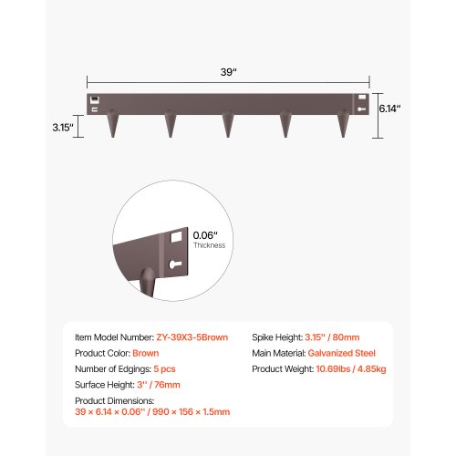 VEVOR Bordatura in Acciaio Metallo Antiruggine per Giardino, Bordatura Pieghevole per Prato Resistente, Facile da Installare, Divisorio Aiuole Cortile, Marrone 5 Pezzi 990 x 181 x 1,5 mm