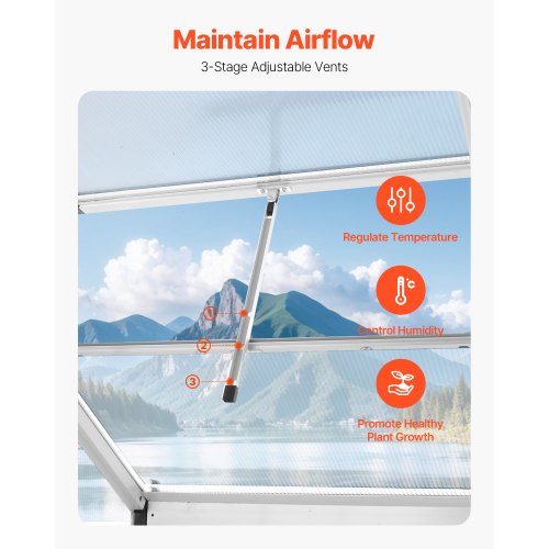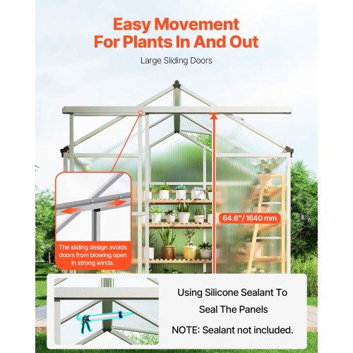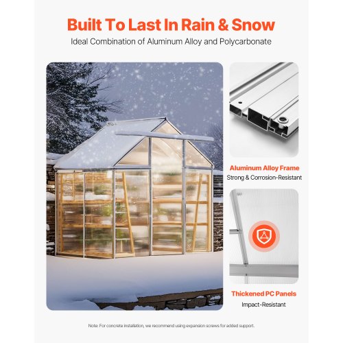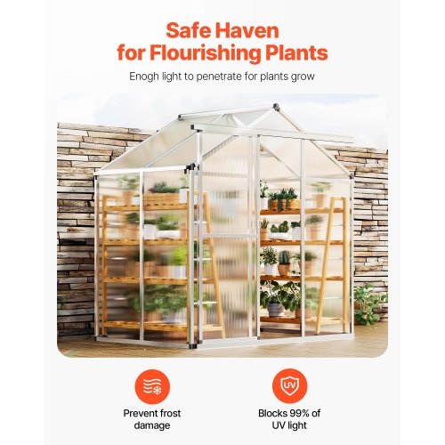 VEVOR Serra in Policarbonato 184x126x193 cm, Serra per Esterni con Finestre di Ventilazione Regolabile, Serra in Stile Padiglione con Porta Scorrevole, Kit Serra in Alluminio per Esterni, Giardino