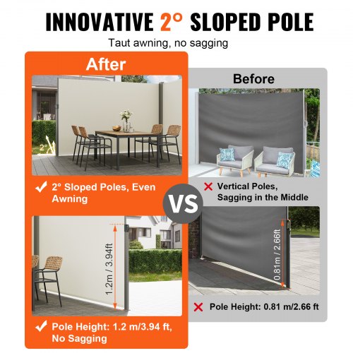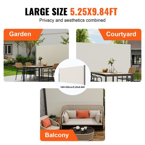 VEVOR Tenda Laterale Retrattile, Schermo Privacy Esterno Giardino Balcone Terrazza 200x300 cm, Frangivista Retrattile Poliestere 180g Impermeabile, UV30+ Paravento Divisorio per Cortile Balcone Beige