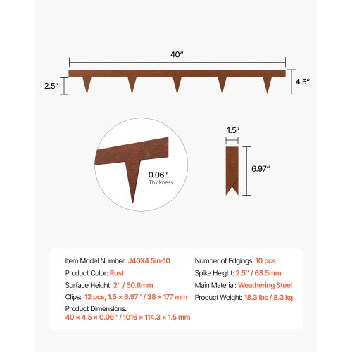 VEVOR Bordatura in Acciaio Metallo Antiruggine per Giardino, Bordatura Pieghevole per Prato Resistente, Facile Installare, Divisorio Aiuole Vialetto, Ruggine 10 Pezzi 1016 x 114,3 x 1,5 mm