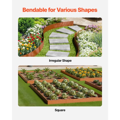 VEVOR Bordatura in Acciaio Metallo Antiruggine per Giardino, Bordatura Pieghevoleper Prato Resistente, Facile da Installare, Divisorio Aiuole, Ruggine 6 Pezzi 1016 x 203,2 x 1,5 mm