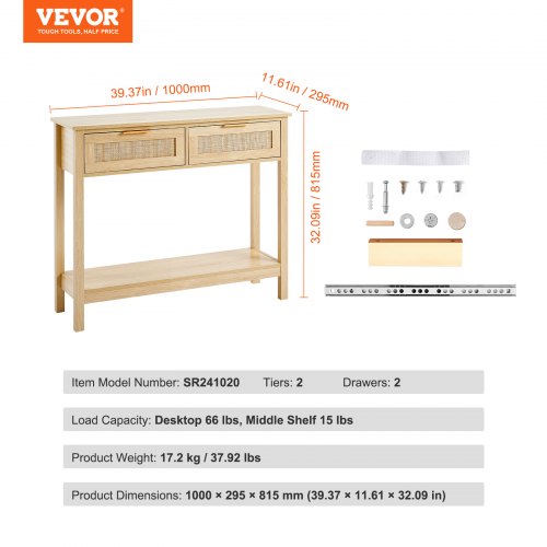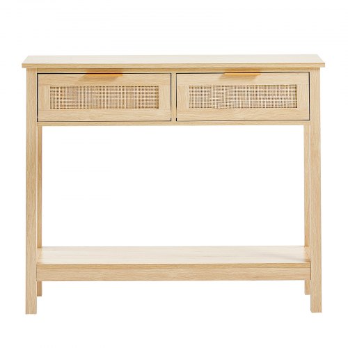 VEVOR Tavolo Consolle in Rattan 1000 x 295 x 815 mm Tavolo Ingresso con Porta Scorrevole in Rattan Naturale, Tavolo Consolle Divano per Soggiorno, Studio, Ingresso o Parete TV, Naturale