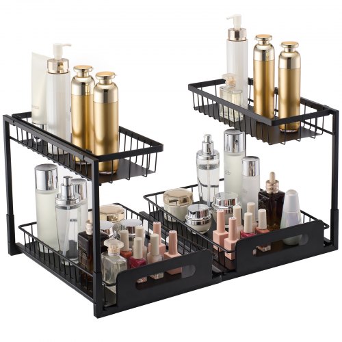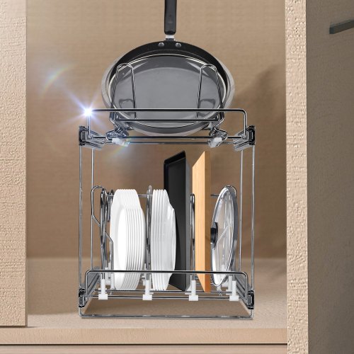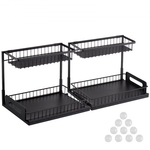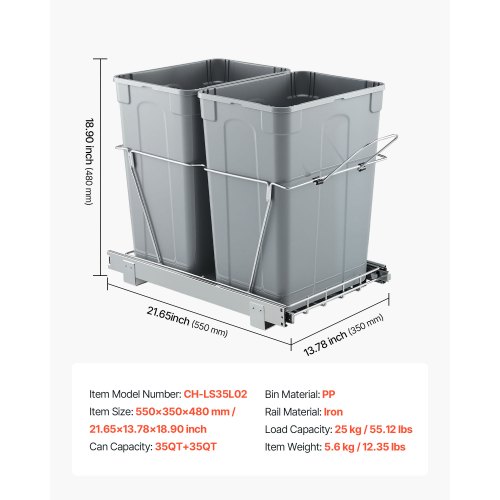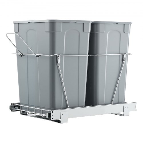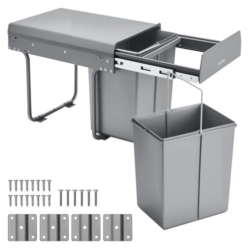 VEVOR Pattumiera Estraibile, ca. 30,6 L x 2, Doppi Contenitori per Rifiuti da Cucina Sottotop, Cestino per la Raccolta Differenziata con Sistema Scorrevole, Estensione Completa e Maniglia Grigio