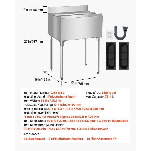 VEVOR Contenitore per Ghiaccio Commerciale, Scatola per Conservazione del Ghiaccio Portatile Capienza ca. 56,7 kg, Contenitore Isolato 800 x 580 x 740 mm 4 Ruote Coperchio Scorrevole per Catering