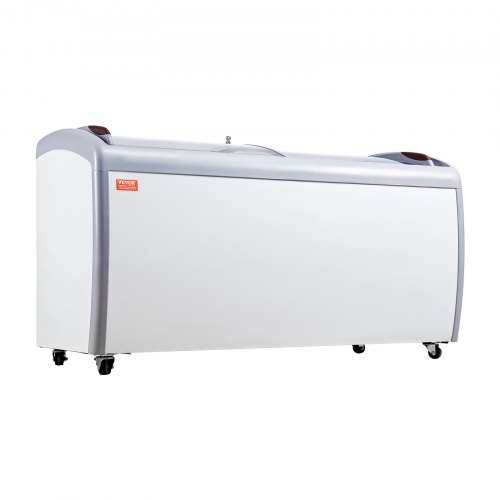VEVOR Vetrina per Gelato Commerciale 665 x 715 x 890 mm Congelatore Mobile 158 L Vetrina per Gelateria con Piano Vetro, 2 Porte Scorrevoli in Vetro con Lucchetto, Ruote di Bloccaggio, Bianco