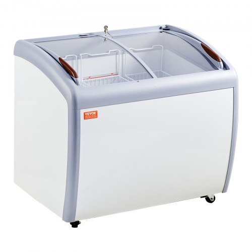 VEVOR Vetrina per Gelato Commerciale 990 x 705 x 875 mm Congelatore Mobile 264 L Vetrina per Gelateria con Piano Vetro, 3 Cestelli Metallici, 2 Porte Scorrevoli in Vetro, Ruote di Bloccaggio, Bianco