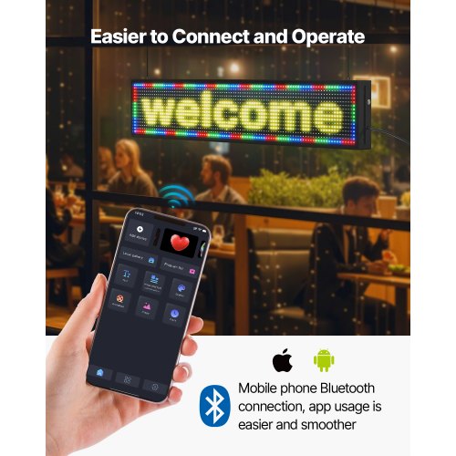 VEVOR Pannello Digitale Scorrevole Flessibile a Colori P6 Programmabile a LED, Pannello Espositivo Fai da Te con Motivo Testo Personalizzato, Controllo GIF App Bluetooth, 990 x 412 x 55 mm