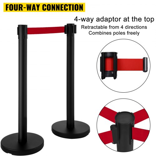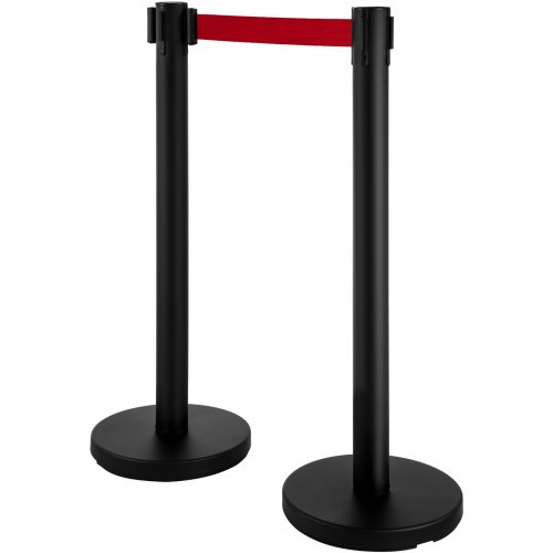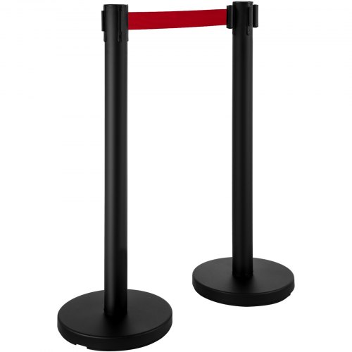 VEVOR Pali con Cintura Rossa per Controllo Folla, Barriere di Controllo della Folla 2 Pezzi, Pali di Acciaio al Carbonio Verniciate con Cintura Retrattile Nera 3300x48 mm, Divisorio della Linea Folla