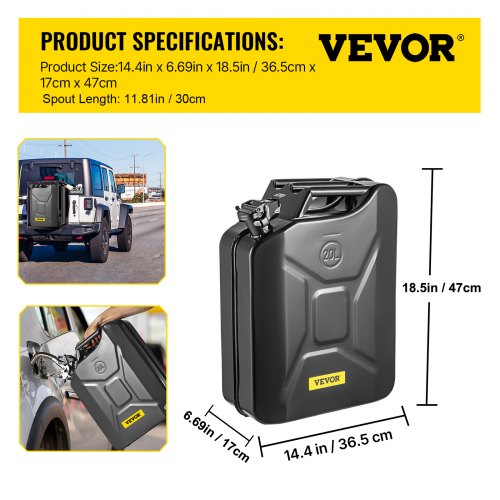VEVOR Tanica per Carburante 5,3 galloni / 20 Litri Portatile con Sistema di Beccuccio Flessibile, Antiruggine e Resistente al Calore, per Auto, Camion, Serbatoio Trasferimento Carburante 2 pezzi